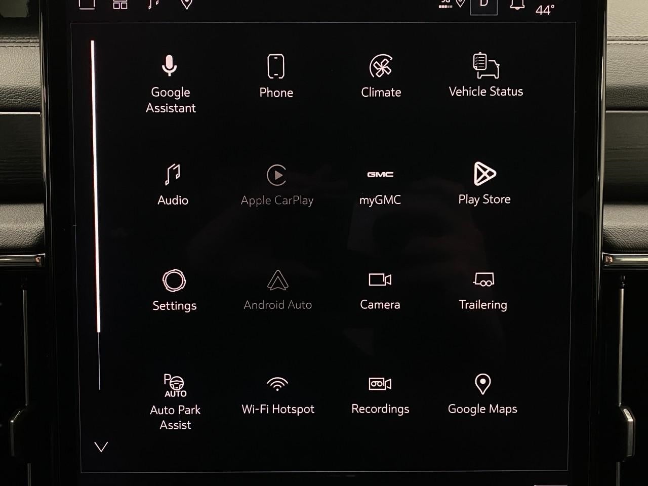 - Audio System, 16.8" diagonal Premium GMC Infotainment System with high contrast display and local backlight dimming, with Google built-in compatibility, including navigation capability, color touch-screen, multi-touch display, connected apps, personalized profiles for each driver's settings, and Natural Voice Recognition